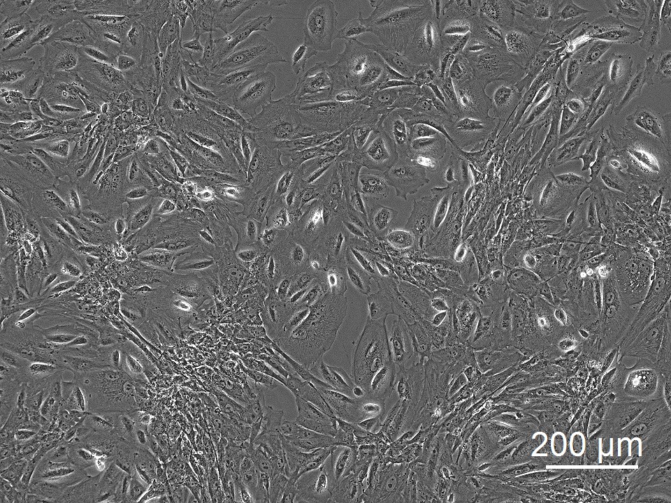 iXCells Biotechnologies provides high quality Human Renal Mesangial Cells (HRMC), which are isolated from human renal tissue and cryopreserved at P1, with >0.5 million cells in each vial. HRMC express fibronectin, smooth muscle actin, and Thy-1. These HRMC are negative for HIV-1, HBV, HCV, mycoplasma, bacteria, yeast, and fungi and can further expand in Mesangial Cell Growth Medium (Cat# MD-0051) under the condition suggested by iXCells Biotechnologies.